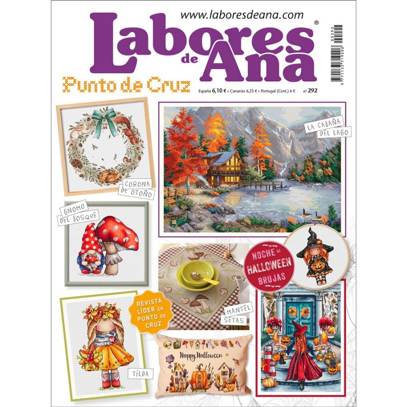 La revista más completa y moderna del mercado. LÍDER EN PUNTO DE CRUZ. Especial Otoño y motivos Halloween. Noche de brujas y brujitas, cojín Happy Halloween, cuadro Cabaña del Lago, Otoño en el bosque, cojín Hello September, muñeca Tilda de otoño, Mantel setas y hojas, Gnomo del bosque, preciosa Corona de otoño, cuadros de Chicas viajeras a Japón y Londres, divertido cuadro Cámara de fotos…